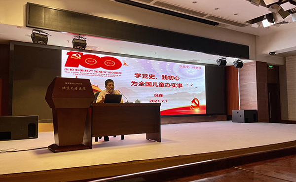 倪鑫院長以“學黨史、踐初心、為全國兒童辦實事”為題,為大家講授黨課。他指出中國共產(chǎn)黨作為百年大黨,在發(fā)展歷程中一直得到人民的擁護和支持,這可以從中國共產(chǎn)黨的百年發(fā)展歷程找到答案。從成立之日起,中國共產(chǎn)黨就把實現(xiàn)共產(chǎn)主義作為黨的最高理想和最終目標,義無反顧肩負起實現(xiàn)中華民族偉大復興的歷史使命。不忘初心,方得始終。正是因為初心如磐,使命在肩,中國共產(chǎn)黨才能近百年猶未老,一世紀正青春。作為中國共產(chǎn)黨的一份子,我們每一個人都有責任有義務學好黨史,用實際行動踐行學史明理、學史增信、學史崇德、學史力行,學黨史、悟思想、辦實事、開新局。