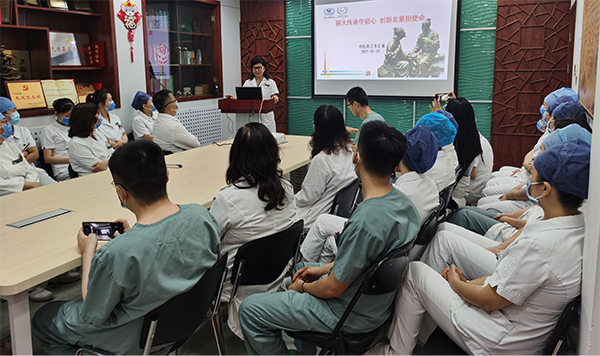 隨后,中醫(yī)科主任胡艷介紹了中醫(yī)科在“學黨史、學院史、學科史”工作中對中醫(yī)科科室文化傳承的梳理工作,同大家一起回顧了中醫(yī)科的發(fā)展歷程與成績,并和大家一起對中醫(yī)科的未來進行了展望。